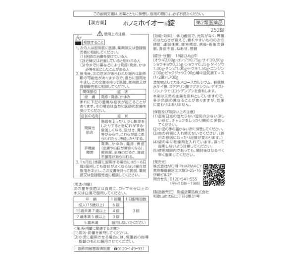 Trong liều hàng ngày (18 viên nén, 3.6 g) chứa 1.70 g chiết xuất Hochuekkito được bào chế từ các thành phần sau: