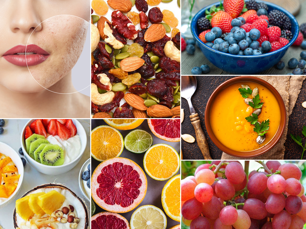 Trái cây chứa nhiều vitamin C giúp kháng viêm, làm lành vết thương, ngăn ngừa lão hóa và phục hồi làn da. Bạn nên bổ sung các loại trái cây như: ổi, kiwi, xoài, cam, quýt, bưởi,…